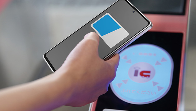あんしんファミリースマホに同梱の専用ケースに、お手持ちの交通系ICカード※1を装着してご利用いただけます。