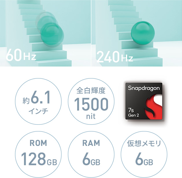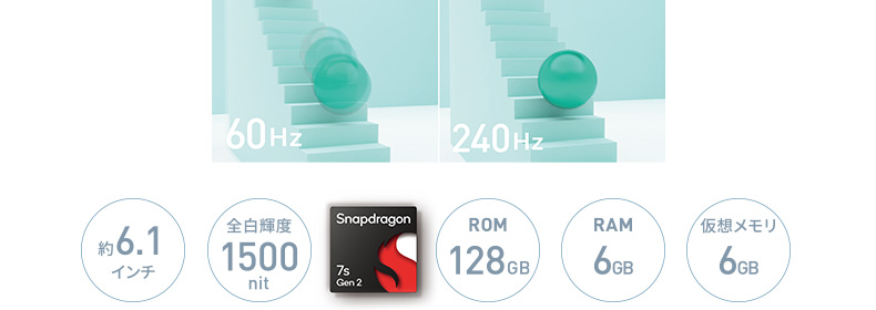 最大駆動240Hz※5で可変駆動するPro IGZO OLEDディスプレイだから、スクロール時など動きがあるシーンではなめらかに表示、画像が止まっているシーンでは1Hz駆動で省エネ。快適と省電力を両立。