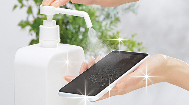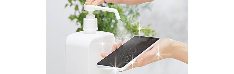 除菌・消毒する場合、誤動作防止のため画面を消灯してから行ってください。界面活性剤(台所用洗剤)、界面活性剤(家具用洗剤)、次亜塩素酸水、アルコールを使用し、噴霧、拭き取りまたはその両方を合わせた製品の消毒、ウイルス除去が可能です。噴霧による場合、製品から5cm程度離して霧吹きで噴霧して拭き取ってください。拭き取りによる場合、アルコール除菌シートまたはキッチンペーパーに液剤を浸み込ませたもので製品を拭き取ってください。噴霧・拭き取り後は水拭きをして液剤を取りのぞいてください。「厚生労働省・経済産業省[独立行政法人製品評価技術基盤機構(NITE)]・消費者庁発表」の消毒方法をもとにFCNT独自試験を実施し、本製品に影響がでないことを検証しております。無故障を保証するものではありません。除菌・消毒の詳細については「
