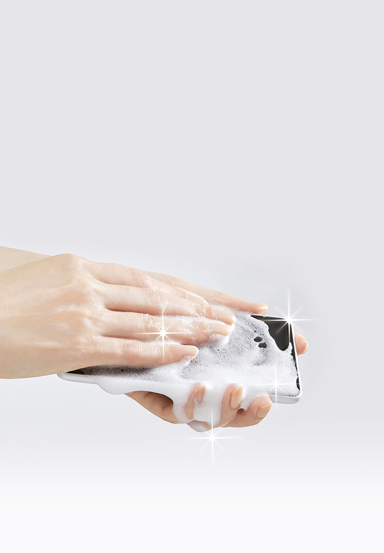 泡タイプのハンドソープでまる洗いできます。