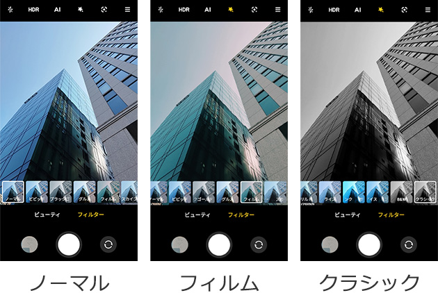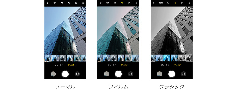 2022年4月時写真13種類、動画12穂類のフィルターを搭載。