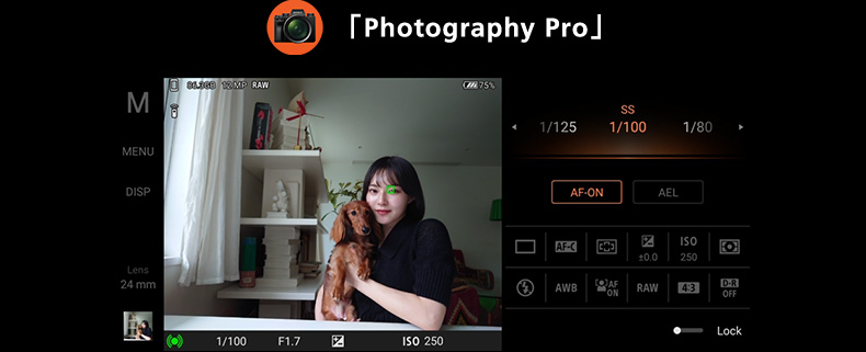 デジタル⼀眼カメラα™から継承されたUIで