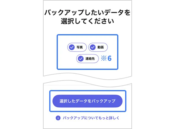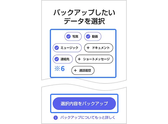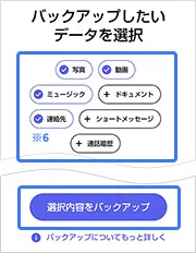 上記以外の項目(「連絡先」・「SMS/MMS」・「通話履歴」)のみをバックアップ設定しても割引は適用されませんのでご注意ください。