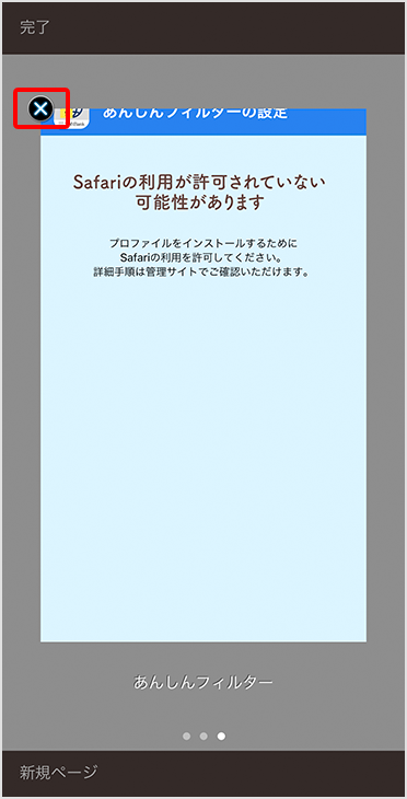 Safariが消えていることを確認し、「あんしんフィルター」を起動