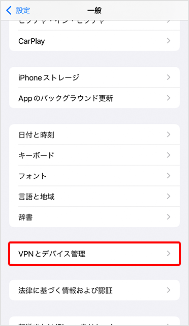 「VPNとデバイス管理」を選択