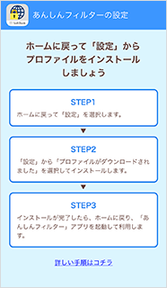 - アプリのフィルター強度変更や利用時間の制限機能の利用にはプロファイルのインストールが必要となります。