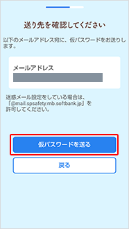 「仮パスワードを送る」を選択
