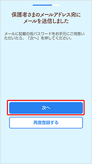 保護者さまのメールアドレスを入力後に「次へ」を選択