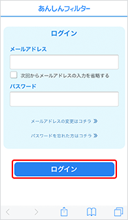 登録したメールアドレスとパスワードを入力し「ログイン」を選択