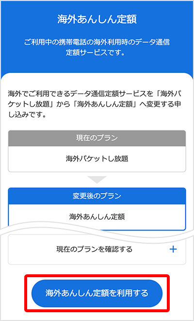 - 「海外パケットし放題」をご利用になるお客さまは、海外あんしん定額の解除をこちらから行ってください。