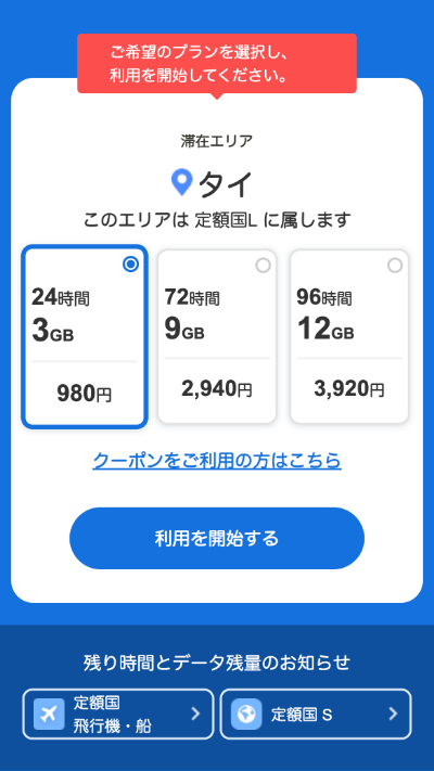 - お客さまがプランの利用開始および回線の解約を同日(日本時間)に行う場合、プランの定額料は適用されず、「海外パケットし放題」の定額料または定額料の対象外の通信料金が適用されます。