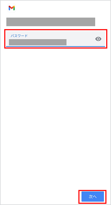 STEP03で確認したパスワードを入力し、「次へ」を選択します。