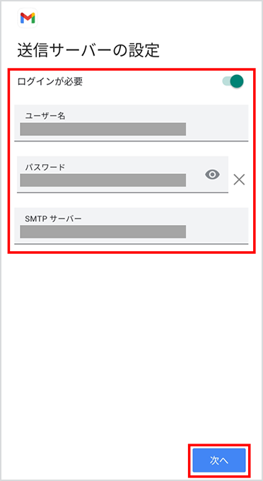 以下の表を参照して各項目を入力し、「次へ」を選択します。