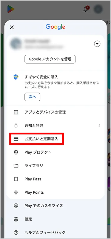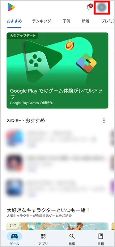 Google Play で右上のプロフィール アイコンを押します。