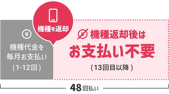 対象機種を48回払いで購入すると、自動的に「新トクするサポート+」に加入となります。