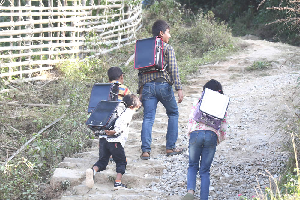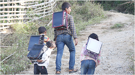 子どもたちは、勉強のための道具や本が揃っていなくても、 デコボコの山道を何時間もかけて通学してでも、学校に通い勉強したいと思っています。