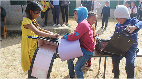 みなさまからいただいたランドセルをネパールの子どもたちに届け、教育課題の改善や学校の仕組みをより良くするための活動に利用していきます。