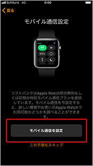 「モバイル通信を設定」をタップ