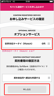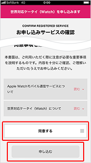 お申し込みサービスの確認をし、必要項目にチェックし「申し込む」をタップ