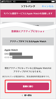 Apple Watch の情報を確認し、「登録に進む」をタップ