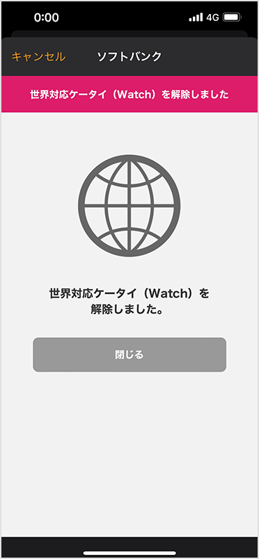 世界対応ケータイ(Watch)を「解除する」をタップ