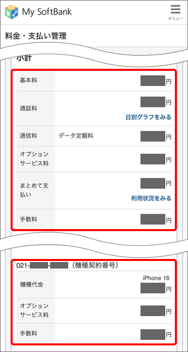 My SoftBankの請求金額の項目ごとに高くなりやすいケースをご案内します。
