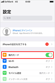 ホーム画面の「設定」の「機内モード」をオンに切り替えてください!