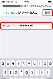 ご利用されるWi-Fiのネットワークを選択後、パスワードが求められる場合はパスワードを入力し、右上の接続を選択してください。