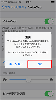 「VoiceOver」をオン(
