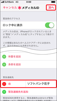 緊急連絡先が正しく選択されていることを確認し、「次へ」を押します。