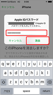 パスワードを入力し、「消去」を押します。