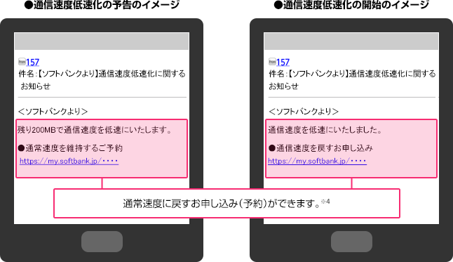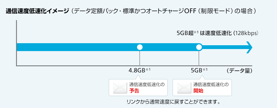 | 通信速度低速化の開始 | 通信速度低速化が開始された場合にお知らせします。※3 |