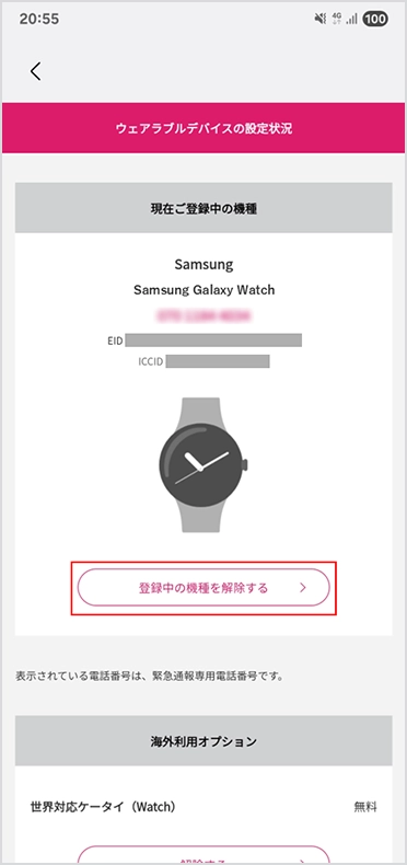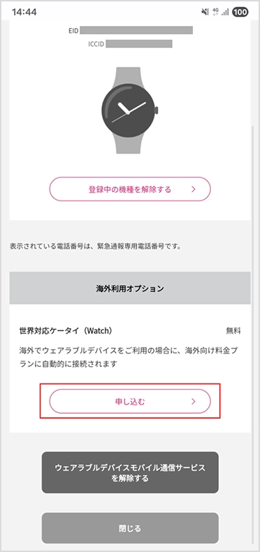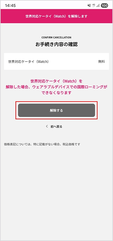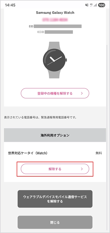 世界対応ケータイ(Watch)の解除する
