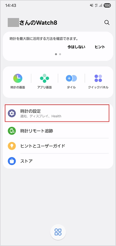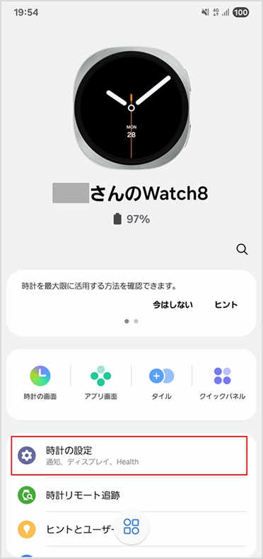 「 Samsung Galaxy Watch の登録を変更する」のSTEP1から4の手順で、設定画面を表示