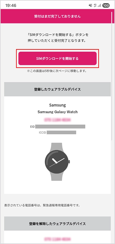 「ダウンロードを開始する」をタップするか、5秒待つと自動的にSIMのダウンロードが開始します。