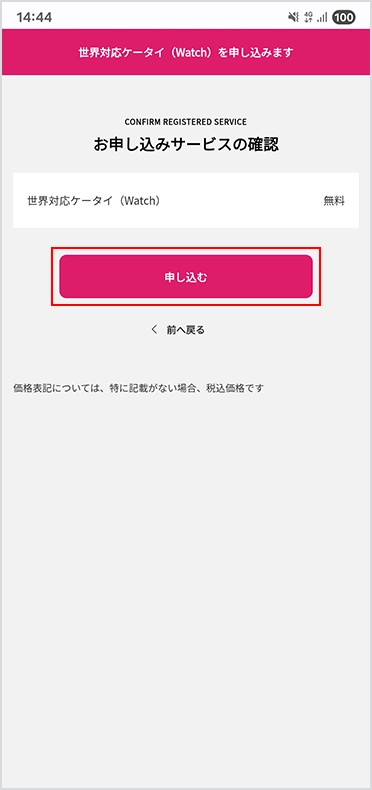 「申し込む」をタップ